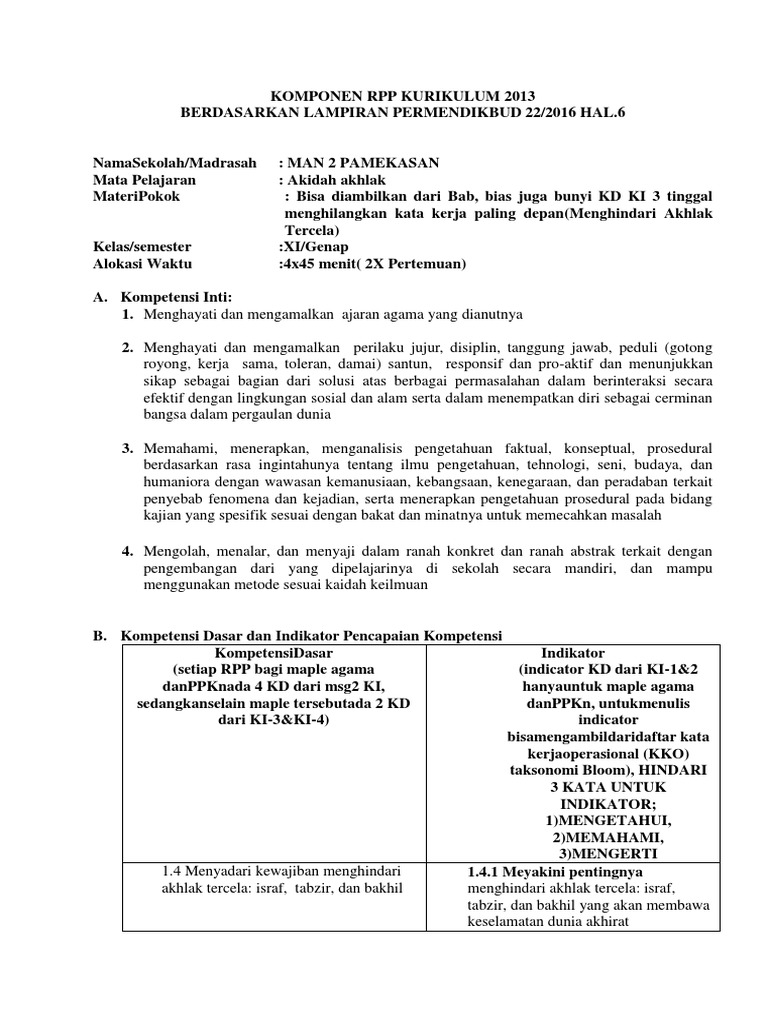 Silabus kurikulum 2013 aqidah akhlak mts kelas vii semester 2.doc. Rpp pendidikan agama islam dan budi pekerti (pai&bp) kelas 10 sma/ma revisi 2017 rpp fikih kelas x madrasah aliyah kurikulum 2013 revisi g. Download rpp kurikulum 2013 mapel akidah akhlak mi kelas ii semester 1. Buku siswa dan buku guru mapel akidah akhlak ma. Khususnya pada kesempatan kali ini kami bagikan adalah materi.