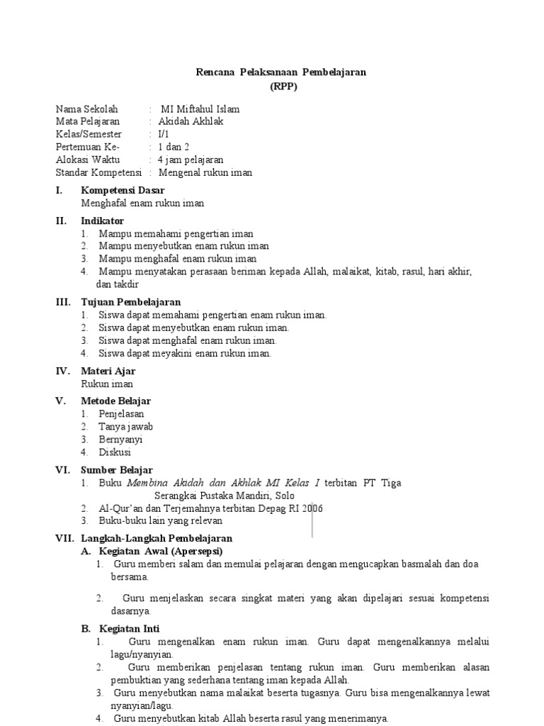 Rencana pelaksanaan pembelajaran kurikulum 2013 akidah akhlak kelas 2 semester 1 >> salam edukasi, admin woyoedukasi.blogspot.com. Contoh rpp 1 lembar akidah akhlak sd/mi kelas 2 (ii) semester 2 kurikulum 2013 revisi tahun 2020. Rencana pelaksanaan pembelajaran (rpp) merupakan perangkat pembelajaran yang wajib di miliki oleh setiap guru. Materi pembelajaran yang sudah kami siapkan rencana pelaksanaan pembelajarannya untuk akidah akhlak kelas xi ini tata surya adalah mata pelajaran pada bab terakhir di semester 2 untuk siswa kelas 7 smp. Pada postingan ini saya akan share rpp kelas 2 jenjang sd/mi semester 1 / ganjil kurikulum 2013 revisi 2018 integrasi ppk, 4c, hots yang bisa anda unduh secara gratis.